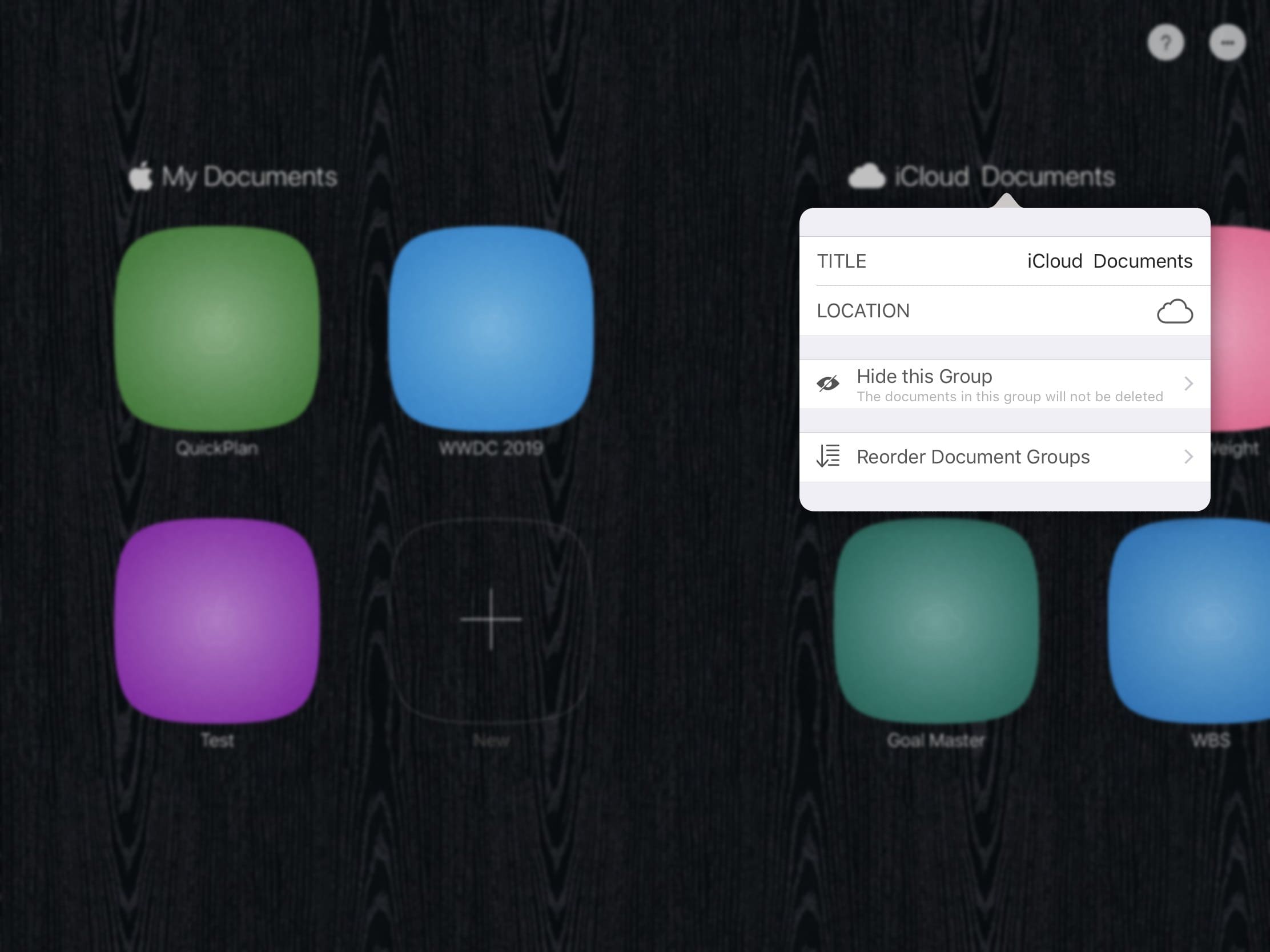 - Tap the "+" tile in a document group to create a new roadmap in the same group. The new document will be stored on the iOS device or on the iCloud Drive up to the group you selected.