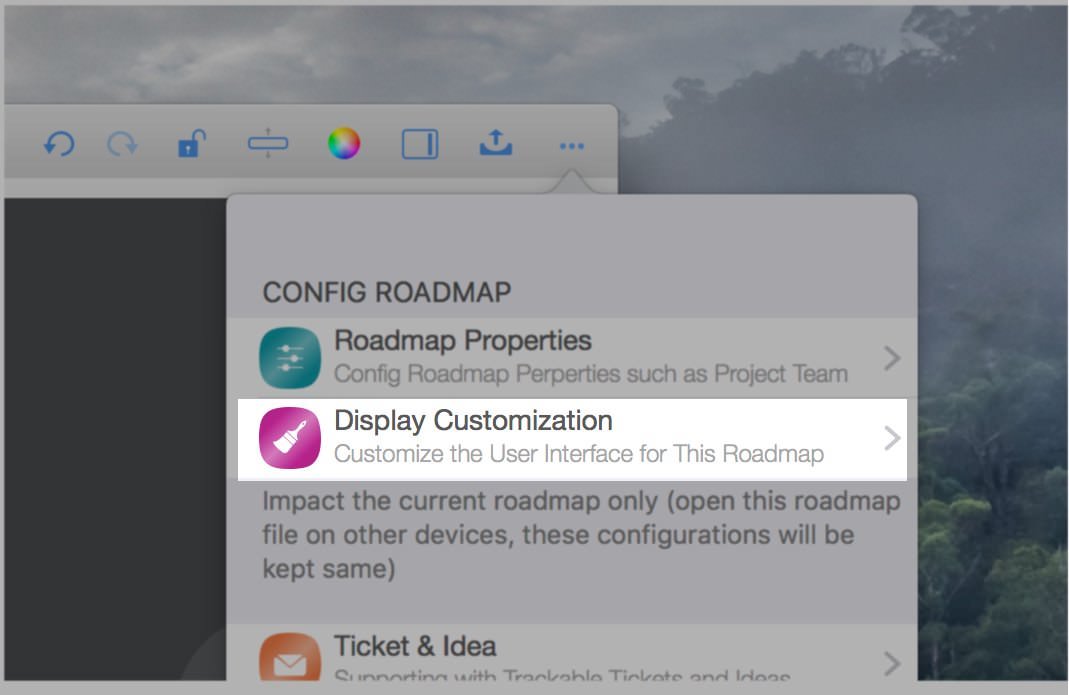 Preceding the options are roadmap-based, that impact the opened roadmap document only. The options are within the roadmap file (with .rdmap extension), which takes the same effect if opening the same roadmap file on other devices.