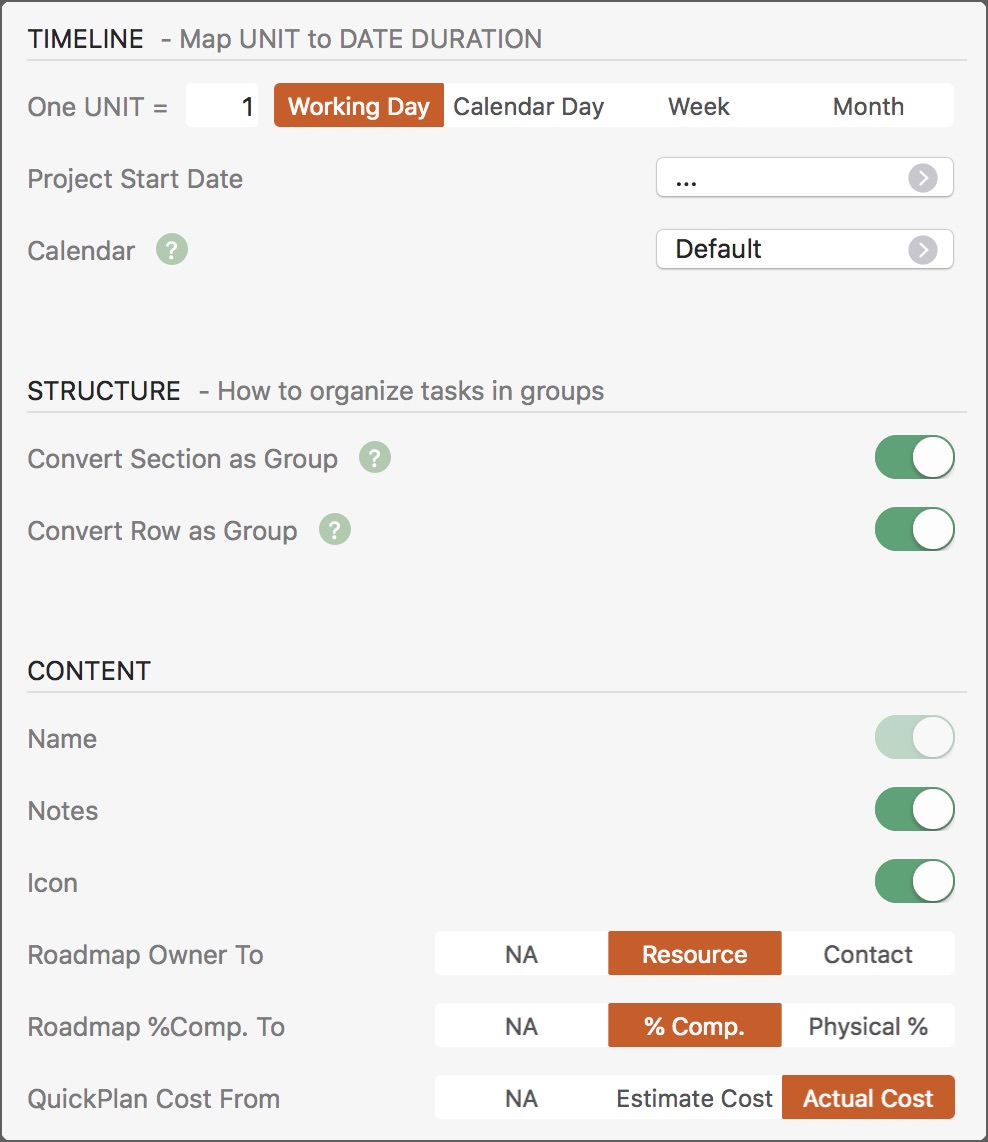 - Start Date - Specify the start date of the exported QuickPlan project.