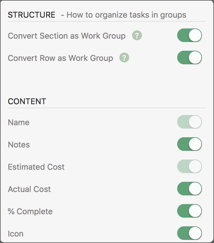 Section, Row, and Task Maintenance