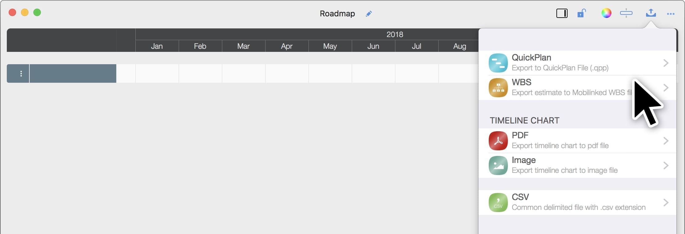 Open a document in Roadmap app, and to export as a .wbs file