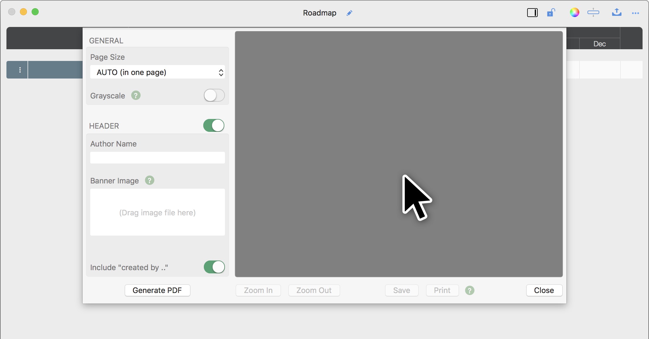 - Include Ad Info – By default, PDF will includes a line to show that the PDF is created by Roadmap app (so other people know what app was used to create this report). This option can be disabled.