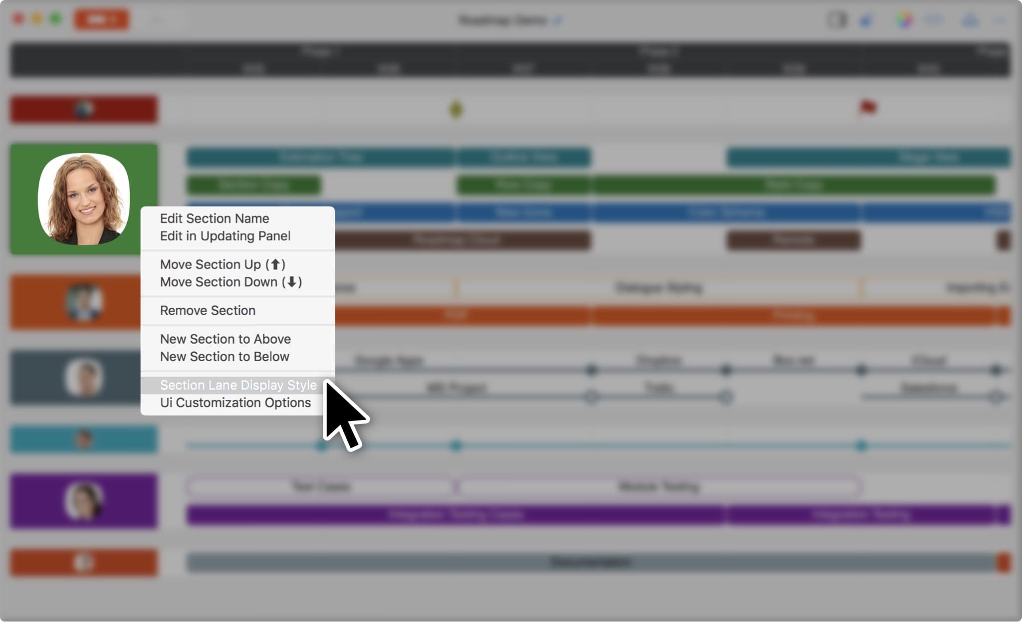 Section lane display style is customizable. Right-click, or press "Ctrl" + left-click, on a section lane.