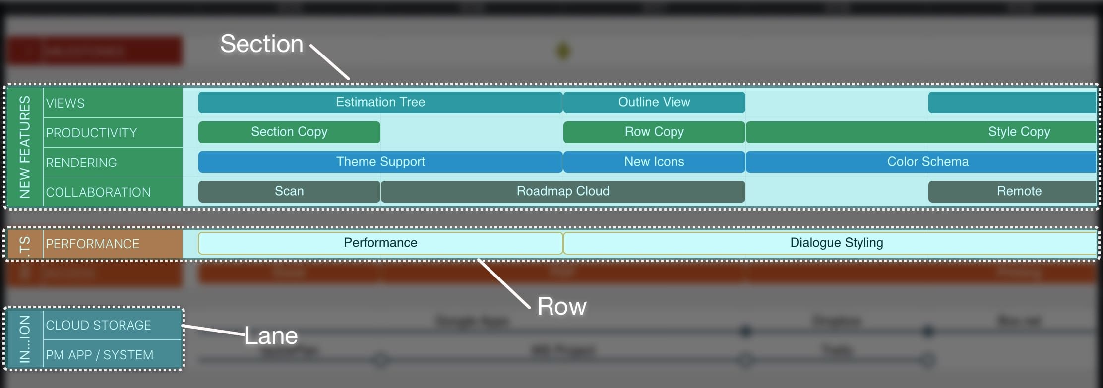 Roadmap tasks are organized in sections and rows.
