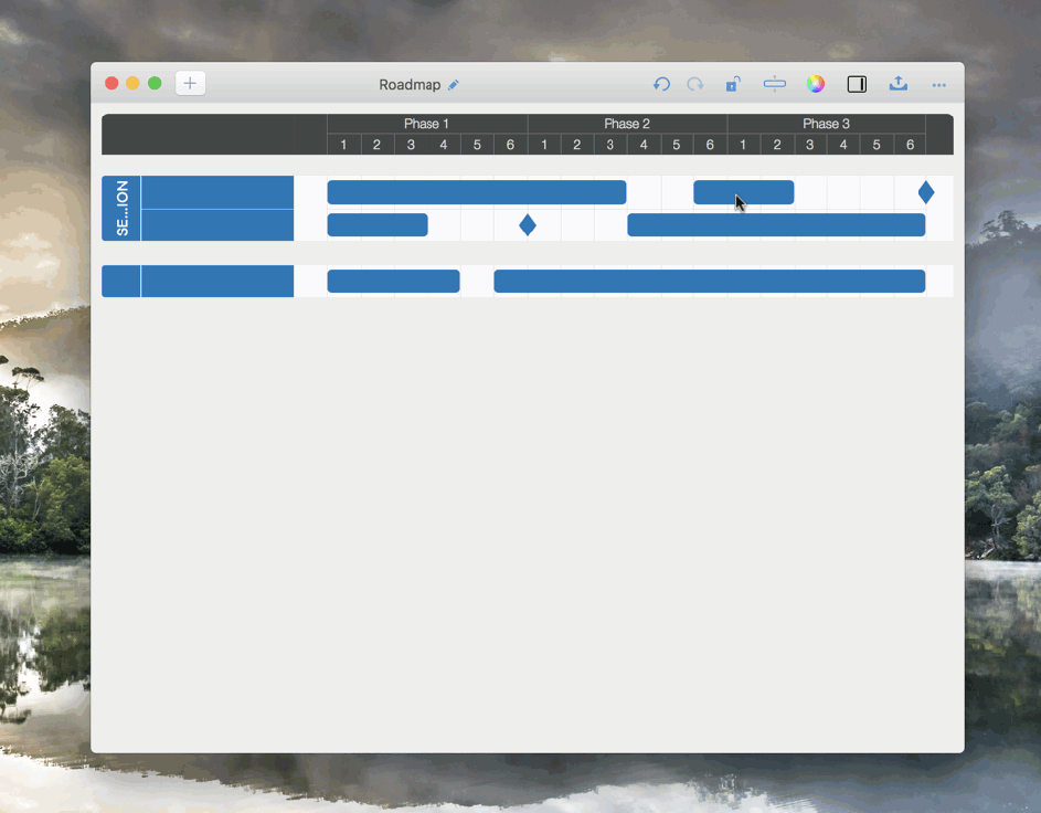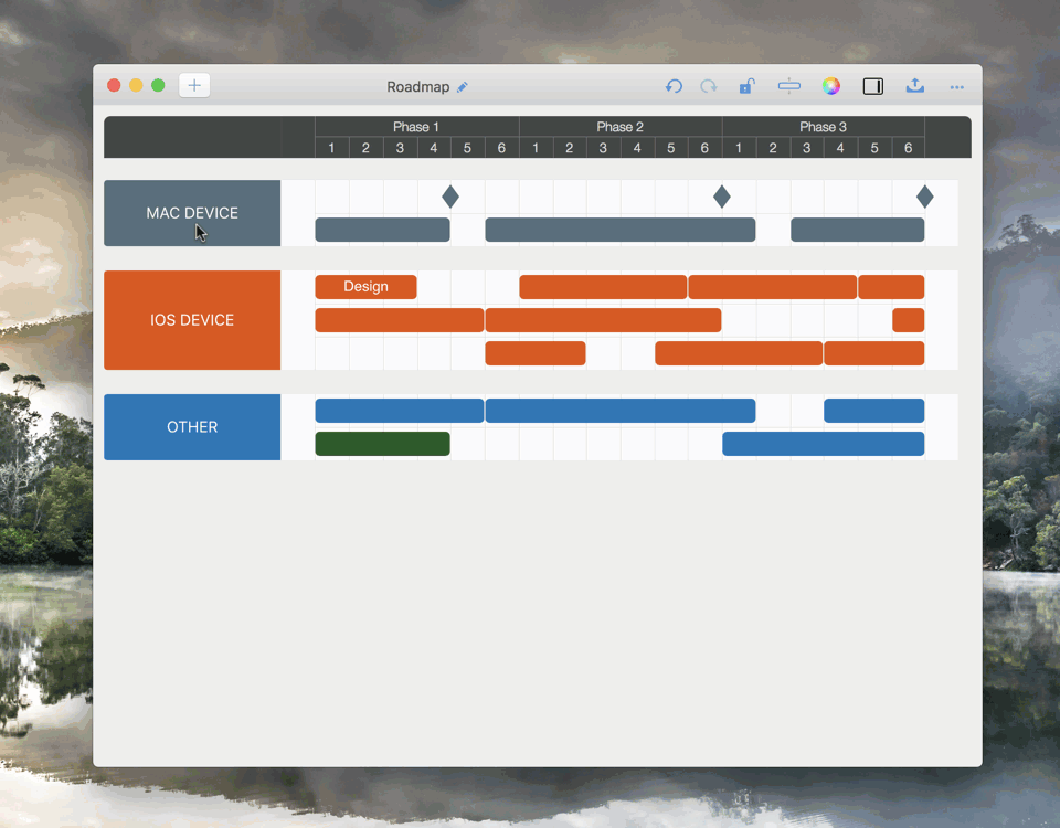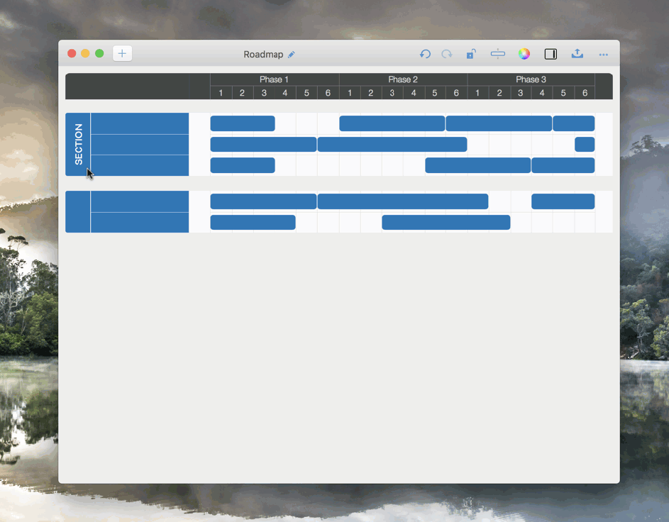 Roadmap for macOS makes creating tasks be very simple, we can create tasks (and with sections, rows together) using the intuitive gesture efficiently.